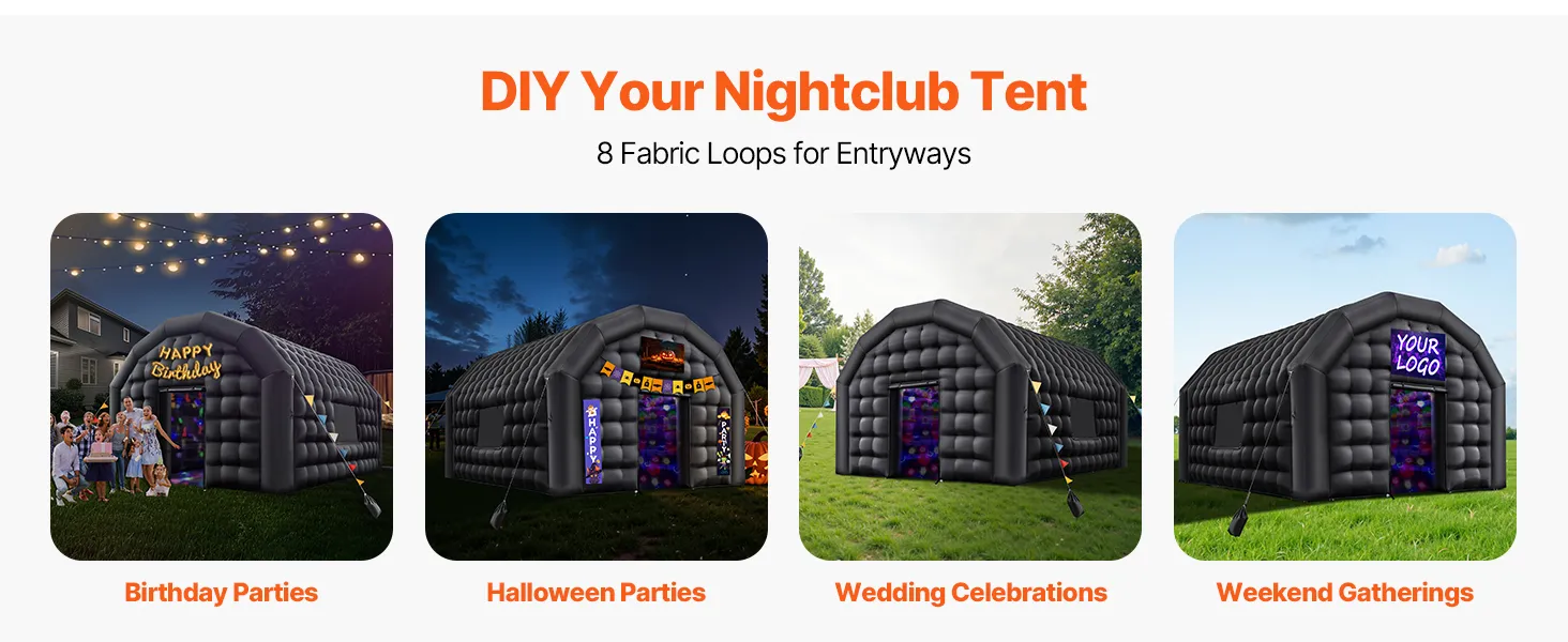 Con 8 presillas de tela para puertas, puedes decorar tu discoteca inflable para que combine con cumpleaños, bodas, fiestas de Halloween o eventos de fin de semana.