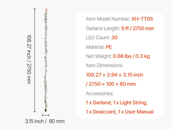 Materiales de primera calidad: Fabricada con polietileno de alta calidad y tiras flexibles en el interior, esta guirnalda es resistente a la decoloración y a la corrosión. Mantiene su forma y está diseñada para un uso prolongado, incluso bajo el sol, la lluvia o la nieve
