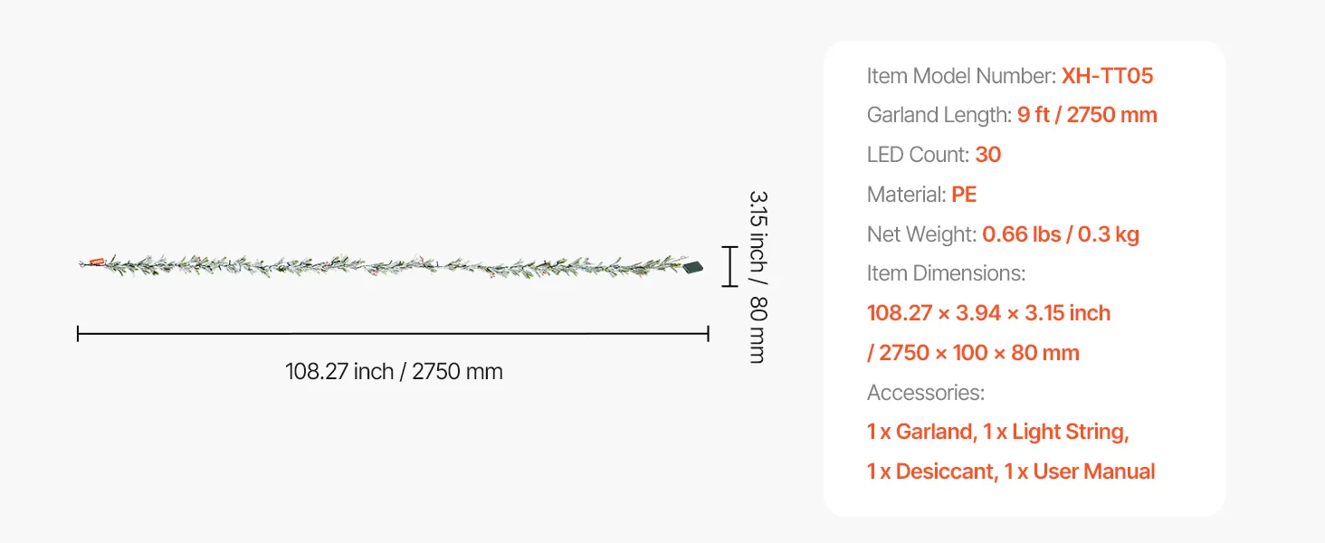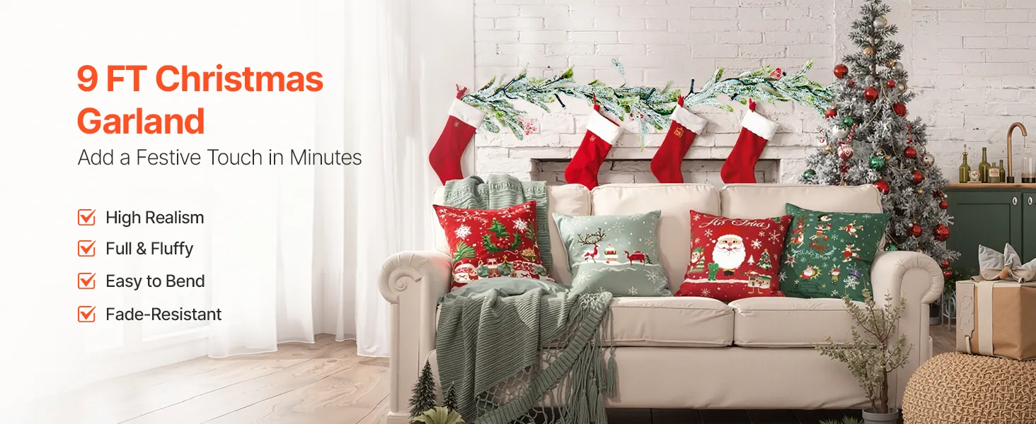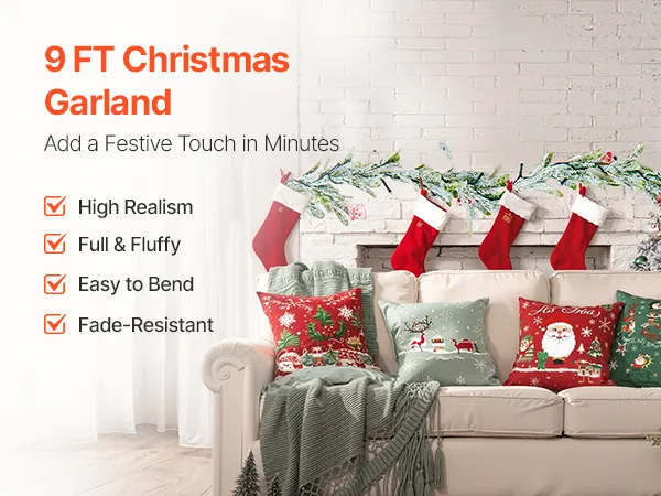 Nuestra guirnalda de Navidad cuenta con tiras flexibles integradas en el interior de las ramas, lo que ofrece excelente flexibilidad y resistencia a la tracción. No se rompe al torcerse ni enrollarse, lo que la hace fácil de usar y duradera durante varias temporadas.