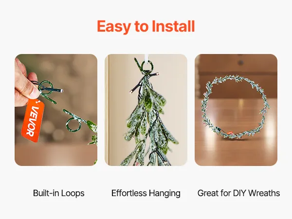 Las anillas para colgar integradas facilitan la instalación de esta guirnalda artificial, sin necesidad de herramientas. Su diseño robusto permite decorar rápidamente árboles, barandillas, ventanas o repisas, ahorrándote tiempo durante la temporada alta.