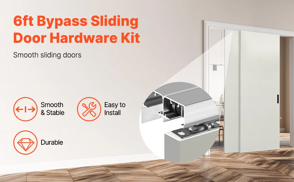 VEVOR Kit de Herrajes para Puertas Corredizas de 1828 mm de Aleación de Aluminio para Puertas Corredizas de Armario con Tiradores, para Sistema de 2 Puertas para Puertas de 35-45 mm de Grosor