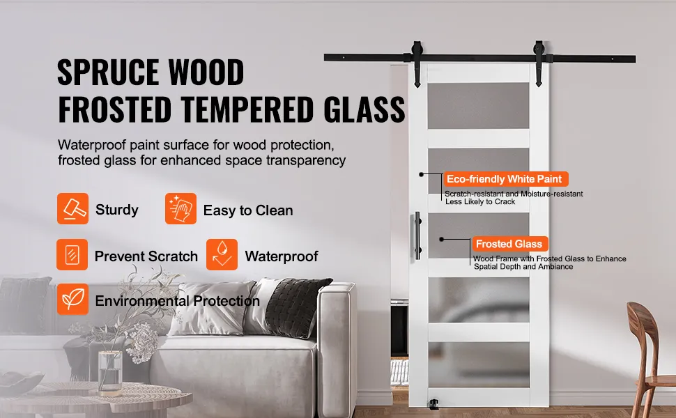 Material de la puerta de alta calidad: esta puerta corrediza de granero está hecha de madera de cedro de alta calidad, conocida por su textura fina y su aroma natural no irritante. Acabado con un acabado permanente, ofrece flexibilidad y durabilidad excepcionales. También viene con vidrio esmerilado, que ofrece más privacidad en comparación con el vidrio transparente. Es un elemento de diseño elegante y dos veces más resistente que el vidrio normal.