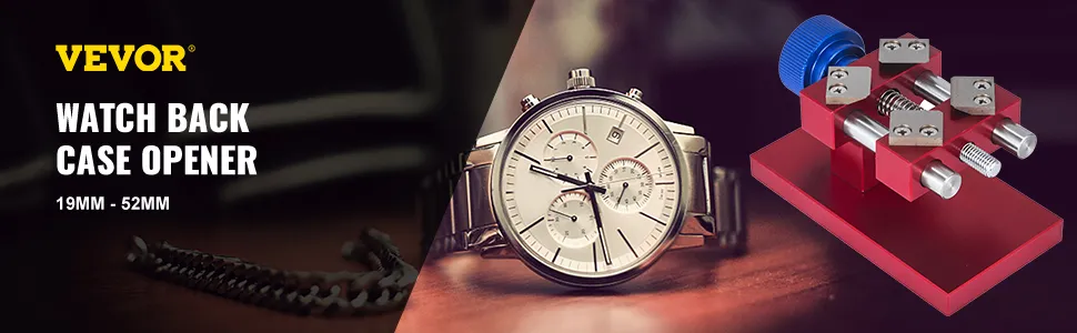 El abridor de la parte trasera del reloj es fácil de operar con un diseño simple. A través de un tornillo con una superficie de patrón especial, puede ajustar el área de trabajo para adaptarse a relojes de diferente diámetro: 19 mm - 52 mm.