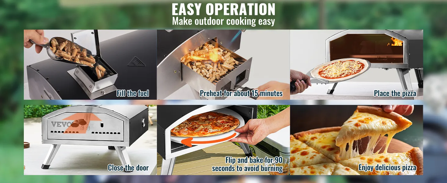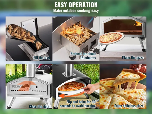 Easy to use: Fill with fuel or connect the gas tank, light it, preheat the pizza oven, place the pizza inside, turn it occasionally to prevent burning, and enjoy the delicious meal.