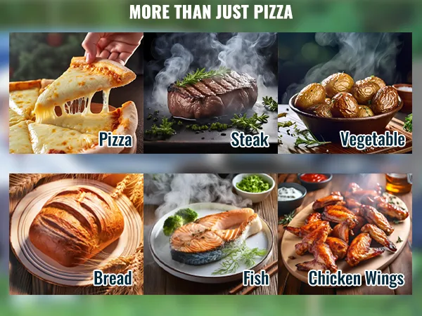 Not limited to pizza; suitable for cooking meat, fish and vegetables.