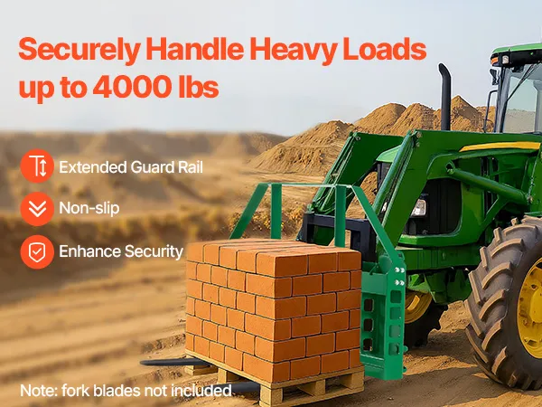 Capacidad de carga de 1814 kg: Nuestro robusto bastidor de horquillas para palés de acero soporta hasta 1814 kg. Ideal para apilar y transportar mercancías en granjas, almacenes y fábricas. La barandilla de 752 mm de altura asegura la carga durante el movimiento. (Las horquillas se venden por separado)