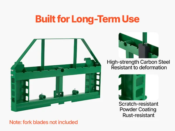 La placa engrosada del marco de la horquilla de paleta es duradera y resistente a la deformación y mantiene las horquillas firmemente en su lugar para garantizar el transporte seguro de objetos pesados.