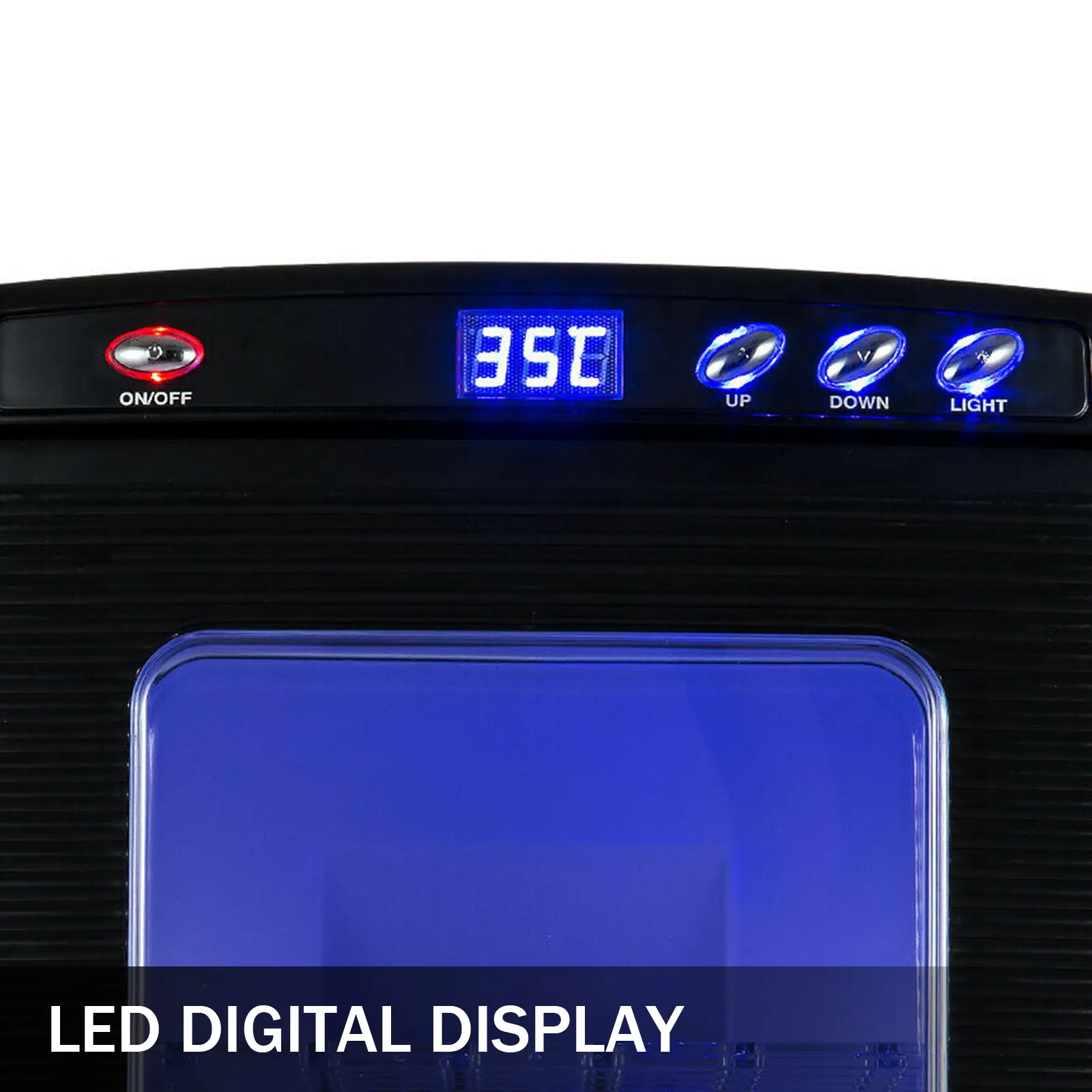 La temperatura actual de la cámara se muestra en el panel LED y puede controlar con precisión la temperatura interior. Temperatura establecida en incrementos de 1 ° C.