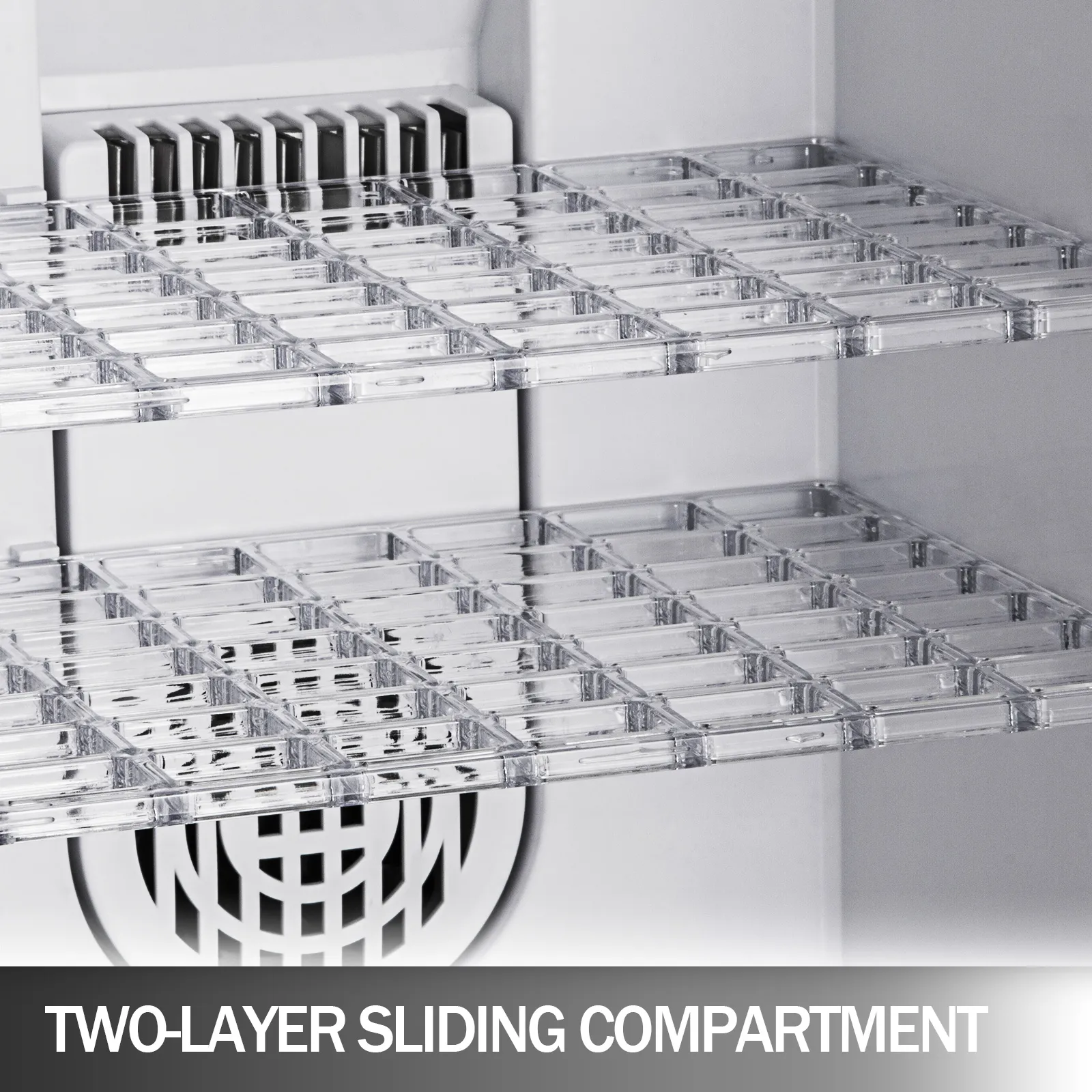 • 【PANTALLA DIGITAL LED BRILLANTE】- La temperatura actual de la cámara se muestra en la pantalla digital LED. El compartimento deslizante de 2 capas puede aprovechar al máximo el espacio de eclosión.