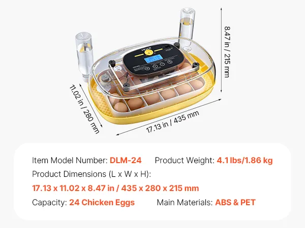 VEVOR Incubadora de 24 Huevos de Gallina, Volteadora Automática con Luz LED, Control de Temperatura y Humedad, Ventana Transparente con Vista 360° y Recarga Automática de Agua, 435 x 260 x 215 mm
