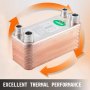 Nuestro nuevo intercambiador de calor presenta un cuerpo compacto y liviano, que ofrece un excelente rendimiento térmico, y el acero inoxidable 316 L + 99,9% de material de cobre puede garantizar su larga vida útil, por lo que es perfecto para la calefacción solar, la recuperación de calor de la unidad de aceite Refrigeración, evaporación y condensación del motor etc.