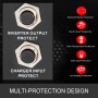 Se incluyen 5 protecciones principales: sobrecarga, protección contra sobretemperatura, sobre voltaje de batería, protección contra sobrecarga y protección contra cortocircuitos.