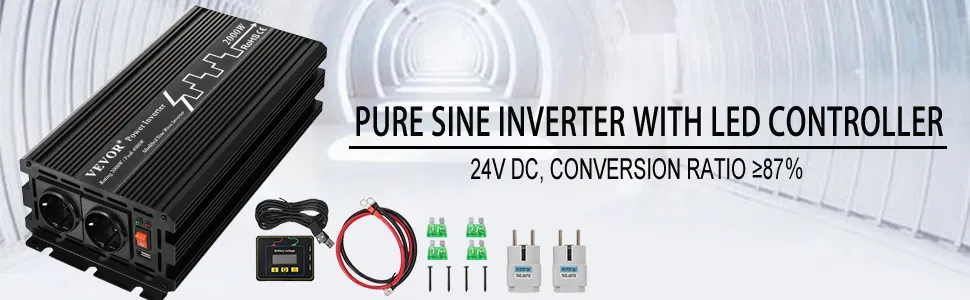2000W 24V DC A 230V AC Inversor De Corriente Onda Sinusoidal Modificada con Mando a Distancia