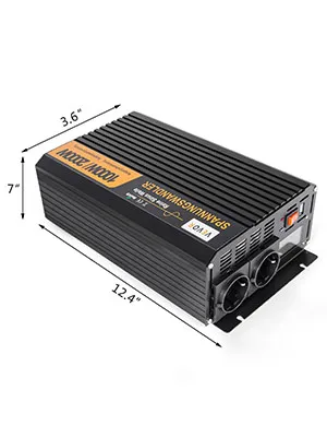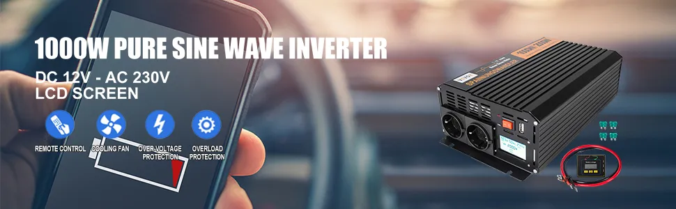 El convertidor de energía para coche está especialmente diseñado para los equipos que necesitan una protección cuidadosa y para proporcionar una salida de onda sinusoidal más estable: inversor de potencia de onda sinusoidal pura de 1.000 W, 2.000 W de potencia pico.