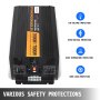 Los inversores de onda sinusoidal pura están diseñados para los equipos que requieren una protección cuidadosa. Puede convertir DC 12 V en AC 230 V con una eficiencia de hasta el 94%. El inversor tiene una protección de seguridad completa y regulación automática de voltaje (AVR). Las ondas sinusoidales puras se utilizan ampliamente en cargas inductivas, como ordenadores portátiles, adaptadores lineales, fuentes de alimentación conmutadas, transformadores, motores, congeladores, ventiladores, etc.