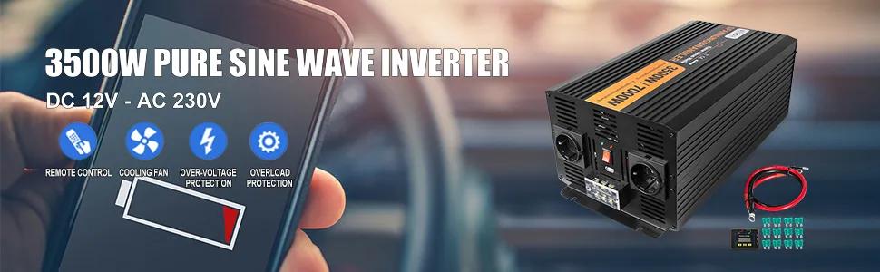El convertidor de energía para coche está especialmente diseñado para los equipos que necesitan una protección cuidadosa y para proporcionar una salida de onda sinusoidal más estable: inversor de potencia de onda sinusoidal pura de 3.500 W, 7.000 W de potencia pico.