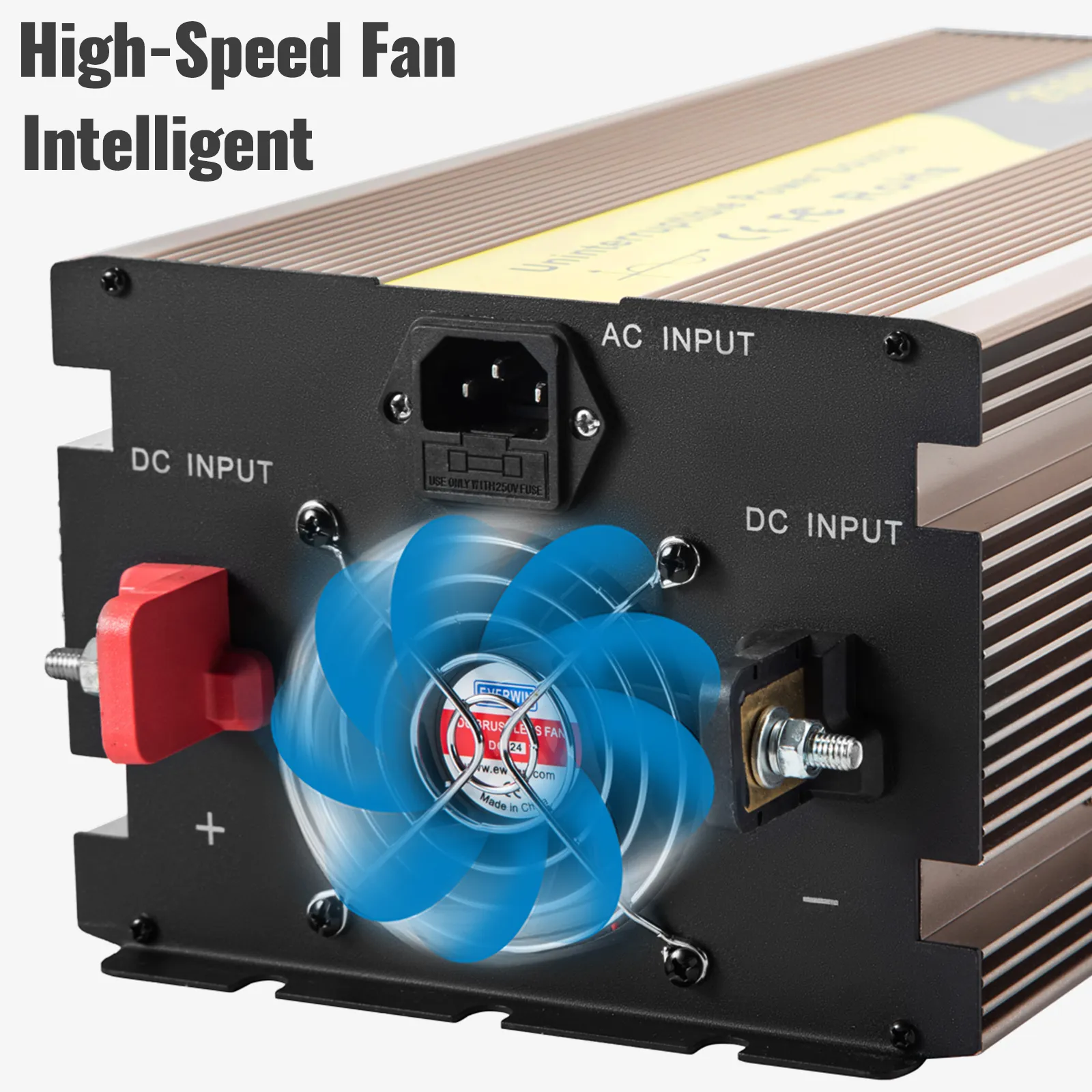 Este inversor de energía de onda sinusoidal pura cuenta con una carcasa de aleación de aluminio, indicador LED, ventilador de enfriamiento inteligente, múltiples medidas de protección y control remoto LCD. En este inversor de potencia de onda sinusoidal pura de 12 V CC, la salida de 240 V CA sigue armónicamente una onda sinusoidal suave y es casi idéntica a la red eléctrica normal. Es más compatible y ampliamente utilizado para cargas inductivas, como computadora portátil, adaptador lineal, fuente de alimentación conmutada, motor, congeladores, ventiladores, LCD, nevera, compresor de aire, equipo médico, fuentes de alimentación conmutadas, transformadores, motores, congeladores, etc.