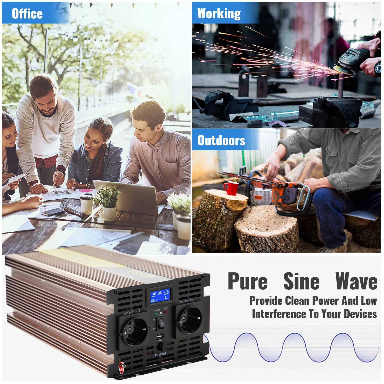 Inversor de Onda Sinusoidal Pura de 2500 W con Control Remoto LCD
