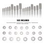 El juego de machos y matrices de 60 piezas (pulgadas) está hecho de acero al carbono. Incluye 27 machos y 27 matrices. Varían de 0,5 pulgadas a 1,75 pulgadas. Estos machos de roscar y matrices de tapón cónico son el estilo más utilizado. Podemos usarlos para cortar material nuevo o perseguir hilos ligeramente dañados. Estos machos de roscar y troqueles cortan acero al carbono y aleado, acero inoxidable, hierro fundido, aluminio, latón y bronce.