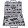 El juego de matrices de roscado incluye 45 piezas de machos y matrices. Los machos y matrices son 20 piezas individualmente para un juego de 45 piezas. Un mango de matriz, dos llaves de roscar, un adaptador y un destornillador. Sus tamaños son los más utilizados.