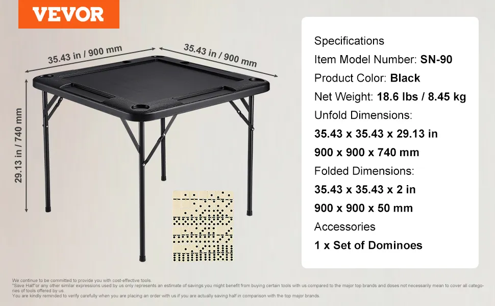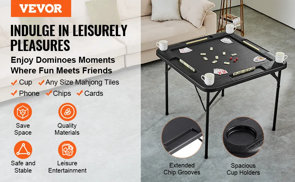 Esta mesa de mahjong plegable está diseñada para ahorrar espacio. Su diseño plegable te permite guardarla fácilmente. Esta característica es ideal para hogares con espacio limitado. Cuando no la uses, simplemente dóblala y guárdala. Esta mesa no ocupa mucho espacio, lo que la hace conveniente para espacios pequeños. El diseño compacto garantiza que puedas disfrutar de tus juegos sin comprometer tu espacio vital. Estas características agregan una capa adicional de comodidad a la comodidad general de la mesa de mahjong VEVOR.