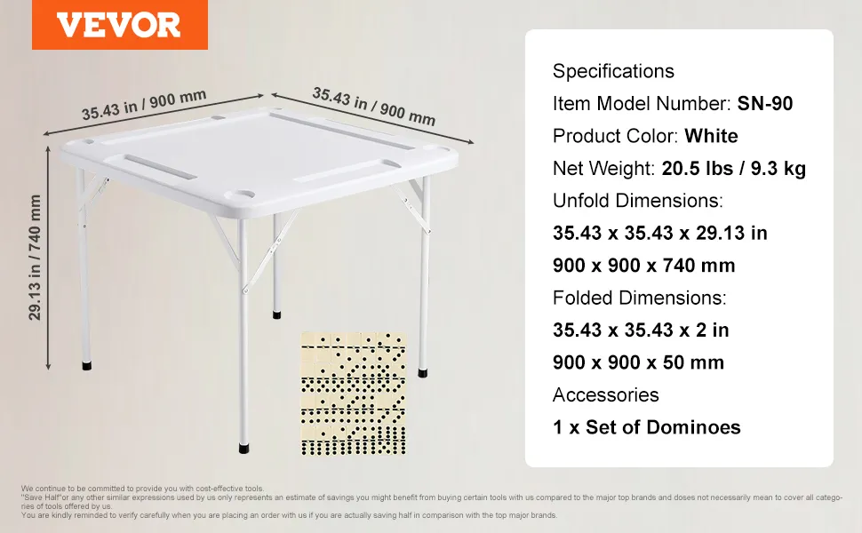 Al plegarse hasta alcanzar un tamaño compacto, la mesa de dominó plegable VEVOR satisface de manera eficiente sus necesidades de almacenamiento sin ocupar mucho espacio. Simplemente, dóblelo y guárdelo junto a la escalera, en un rincón de la pared o en el baúl.