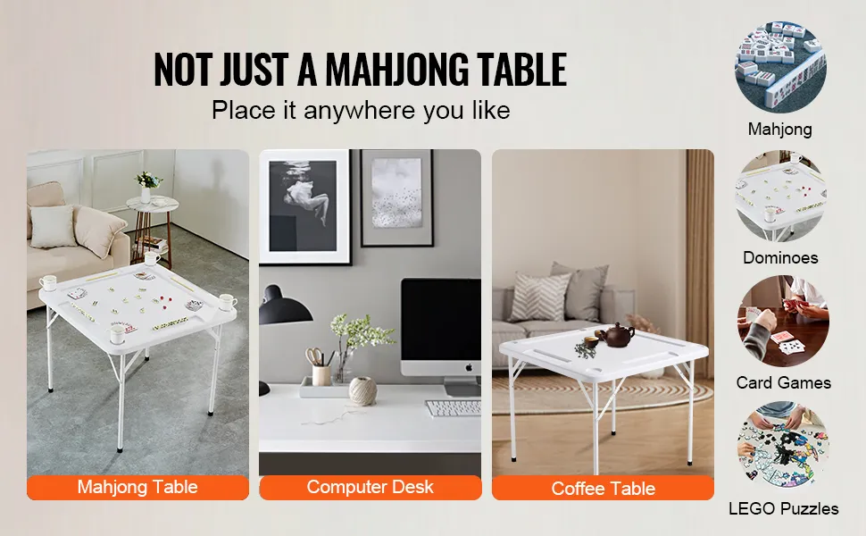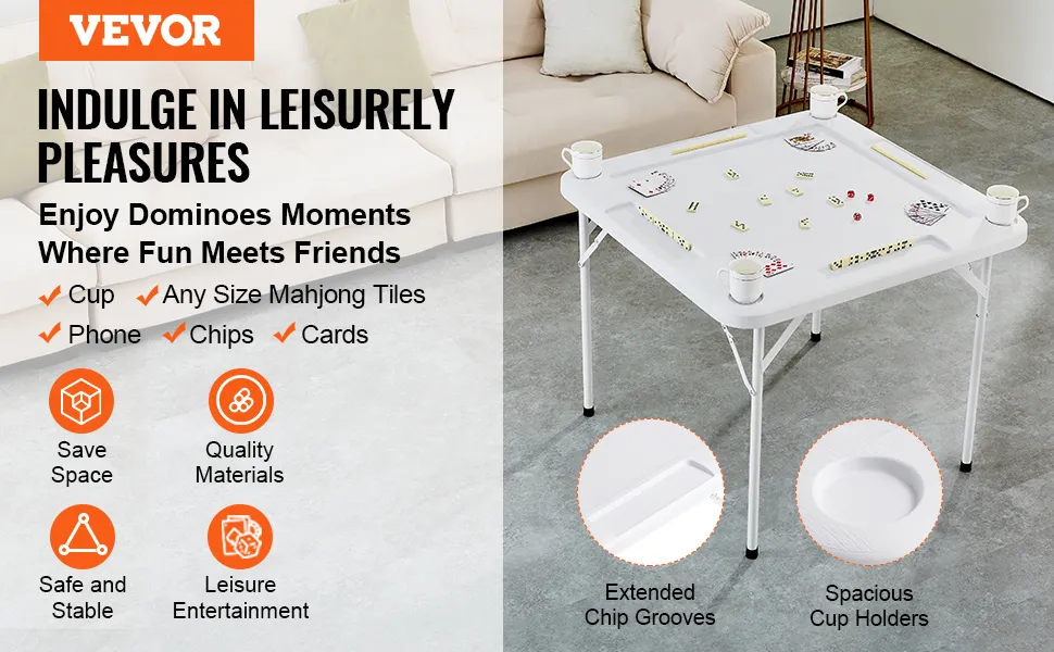 Mejora tus reuniones con la mesa de mahjong plegable VEVOR, perfecta para disfrutar del tiempo libre con familiares y amigos. Con sus prácticos portavasos, podrás mantener tu bebida cerca fácilmente.
