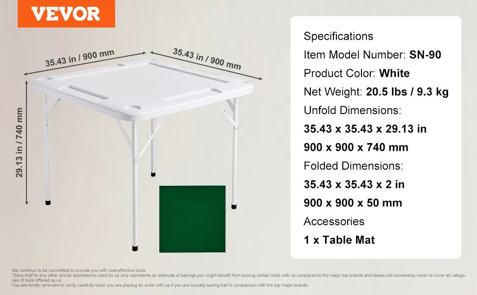 Al plegarse hasta alcanzar un tamaño compacto, la mesa plegable de mahjong VEVOR satisface de manera eficiente sus necesidades de almacenamiento sin ocupar mucho espacio. Simplemente, dóblelo y guárdelo junto a la escalera, en un rincón de la pared o en el baúl.