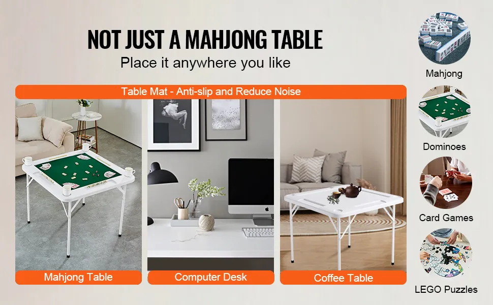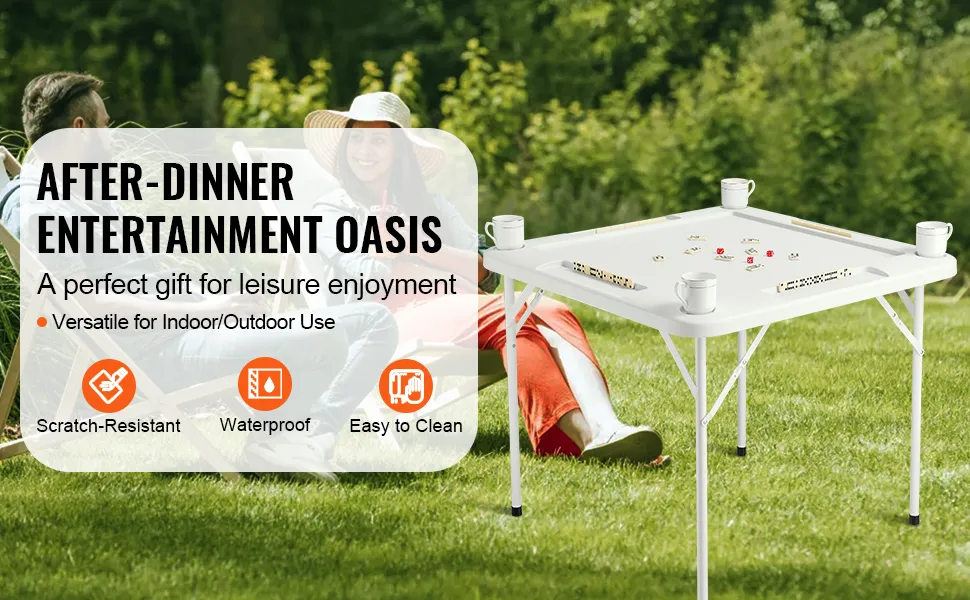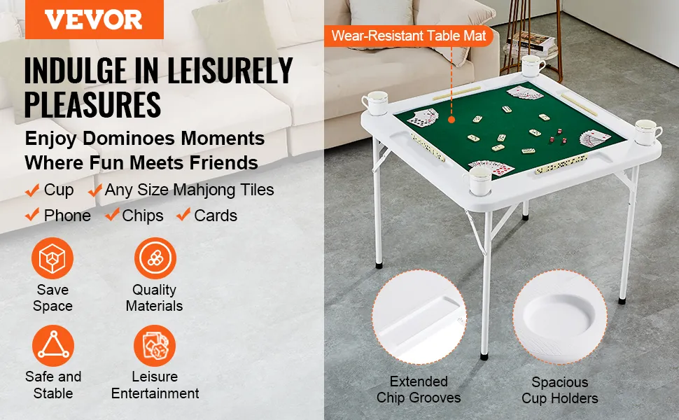 Mejora tus reuniones con la mesa de mahjong plegable con tapete VEVOR, perfecta para disfrutar del tiempo libre con amigos. Con sus portavasos, podrás mantener tu bebida cerca fácilmente.
