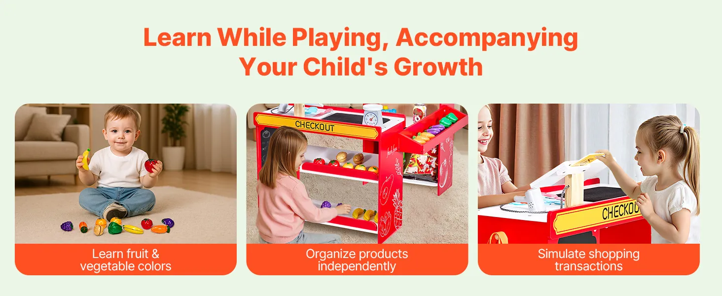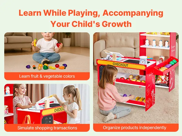 Juego de rol divertido: Este juego de supermercado permite a los niños sumergirse en el mundo de la imaginación. Pueden jugar como dependientes, clientes o encargados de estantería, disfrutando de una diversión sin límites en cada rol