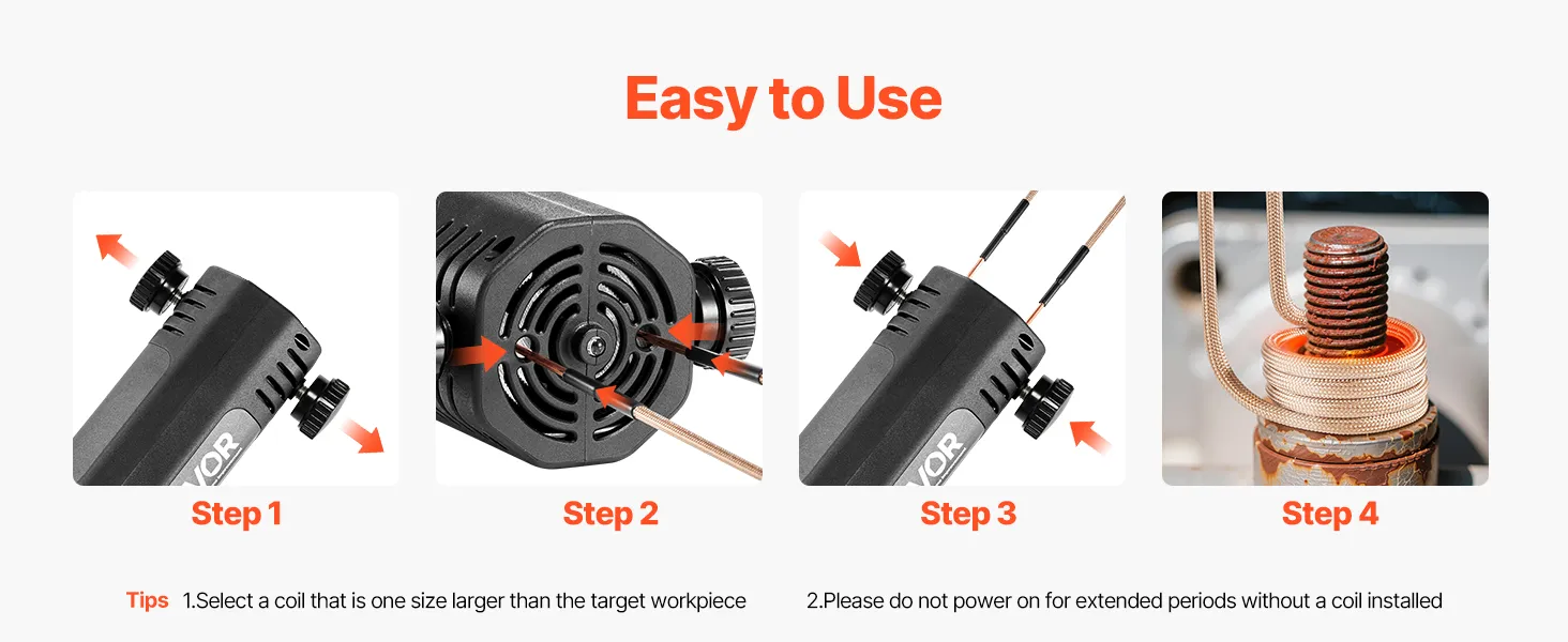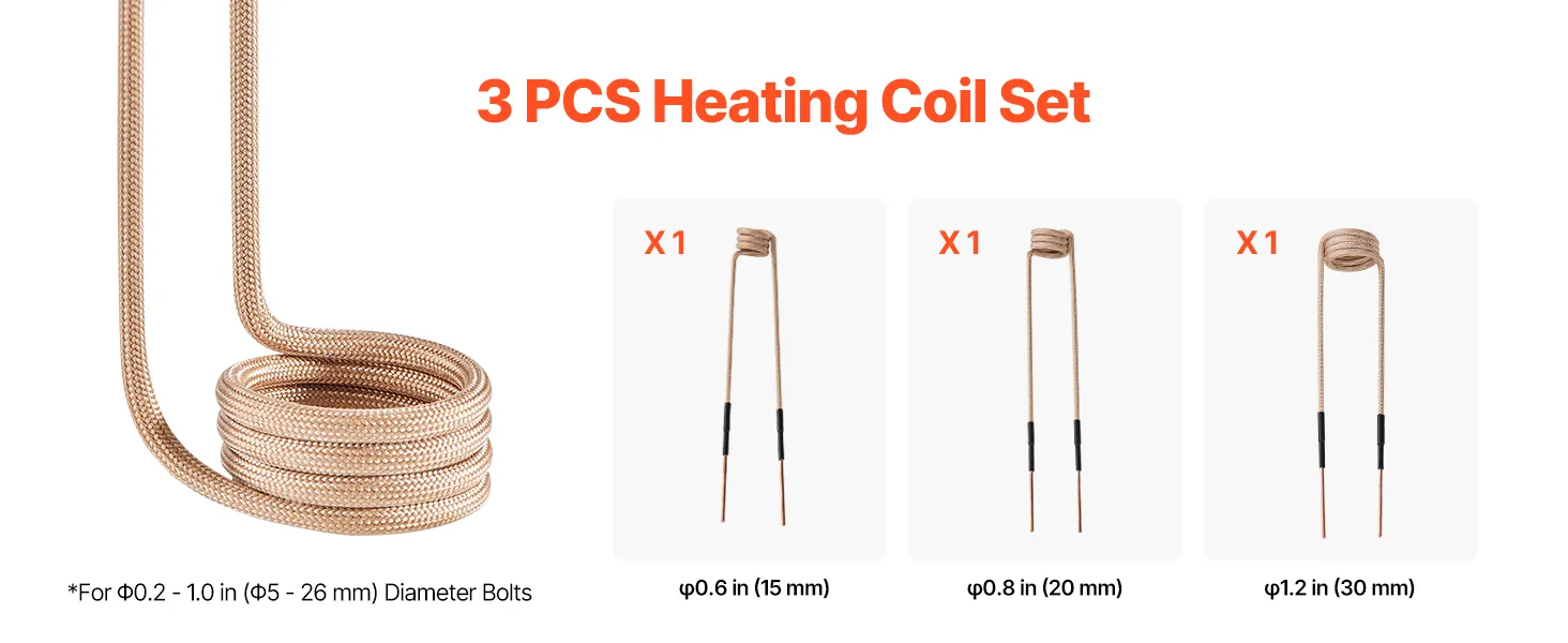 Complete Kit: The magnetic induction heater kit offers 3 specifications of heating coils. Suitable for workpieces of 0.2-1 in (5-26 mm), easily handling delicate metal heating challenges