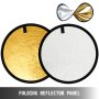 Aquí hay un panel reflector redondo de doble cara y su diámetro es de 43". Un panel de tela + tres cubiertas de colores. Superficie: dorado, plateado, blanco, negro y translúcido.