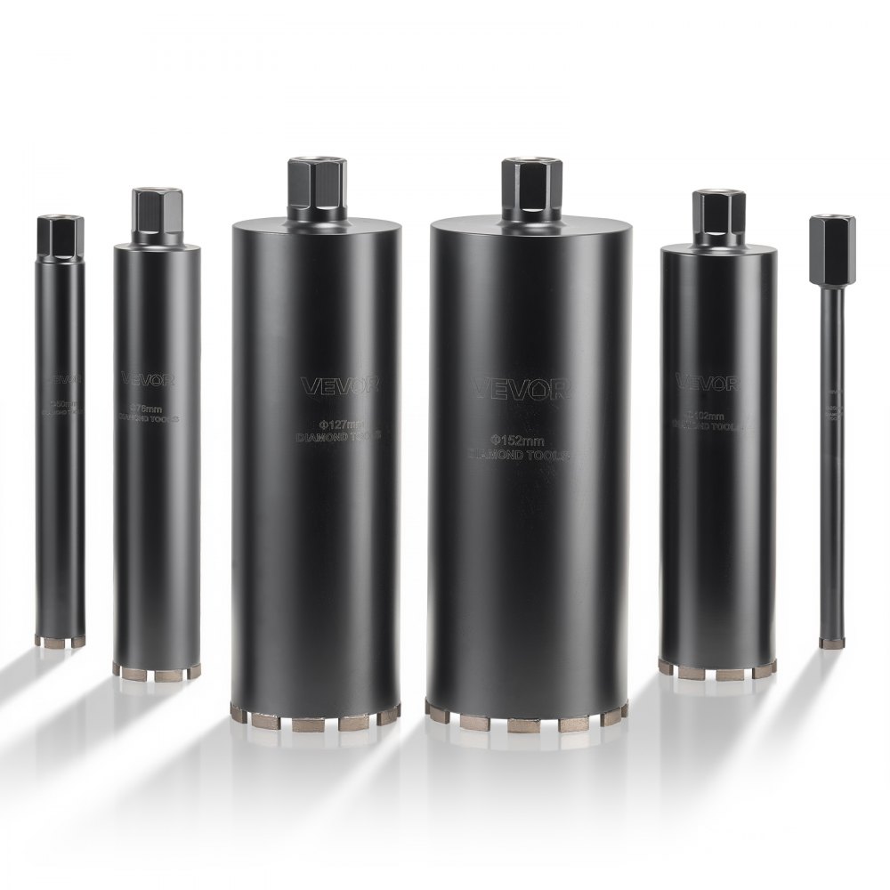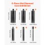 VEVOR Juego de Brocas de Diamante para Perforación de Núcleos, 6 Piezas, φ 25,4/50,8/76,2/101,6/127,0/152,4 mm, Profundidad de Perforación de 356 mm, para Hormigón Armado, Ladrillo y Mampostería