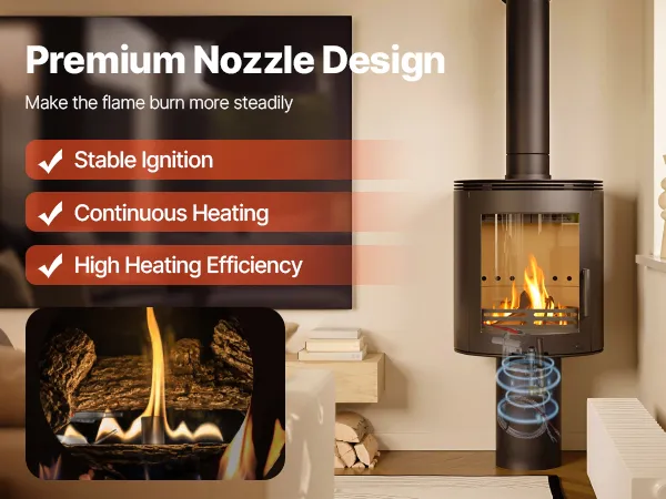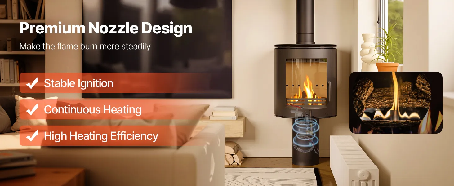 Nuestro piloto de gas para chimenea cuenta con un diseño de boquilla premium que permite una llama potente y constante, logrando una combustión rápida y completa.