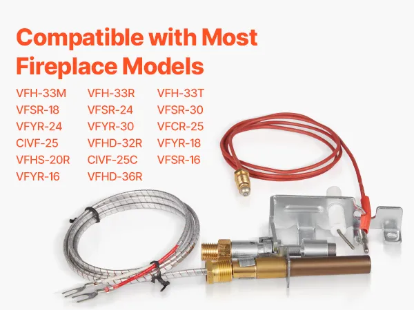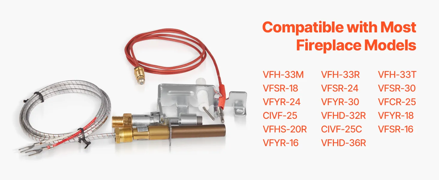 Amplia compatibilidad: Este conjunto de encendido de piloto de gas es compatible con la mayoría de las chimeneas convencionales. No solo es compatible con las chimeneas CIVF-25, CIVF-25C y VFH-33M, sino también con calentadores de agua domésticos y estufas de cocina