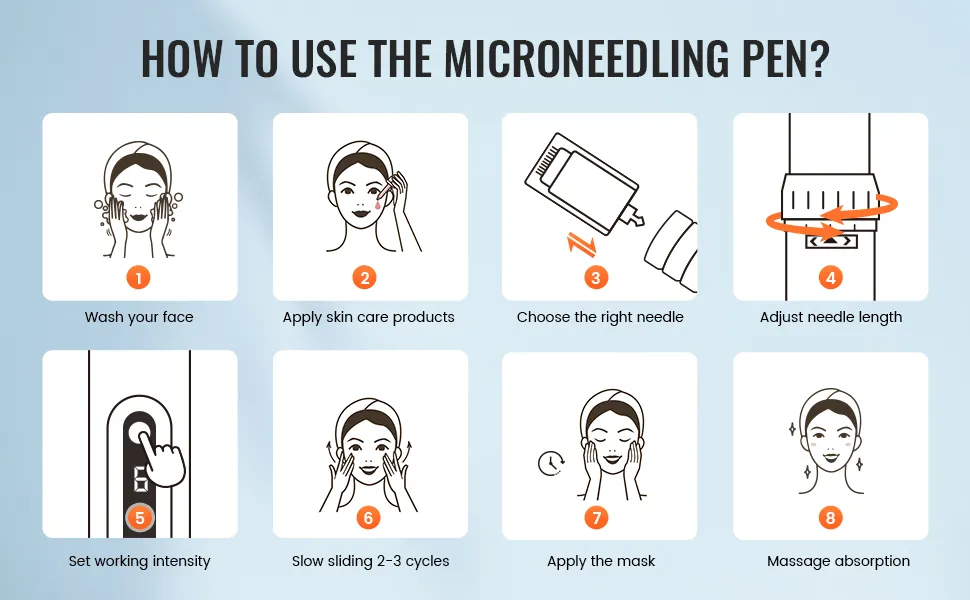 Siga los pasos para maximizar los beneficios de su tratamiento con microagujas y lograr resultados de calidad profesional. El uso regular rejuvenecerá la piel, reducirá las imperfecciones y creará una tez más refinada y radiante.
