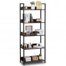 VEVOR Estantería Independiente Rectangular, 6 Niveles, Estilo Escalera Vintage con Estructura Metálica, con Estantes Abiertos, para Sala de Estar, Dormitorio, Cocina, Oficina, Marrón Rústico