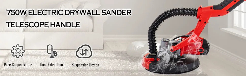 Esta lijadora eléctrica de 750 vatios cuenta con un sistema de auto-aspiración con extracción de polvo, no requiere aspiradora. Conecte la manguera de polvo de PVC a la bolsa de vacío. La bolsa para polvo es compacta para facilitar su transporte, lo que facilita el lijado de paneles de yeso.