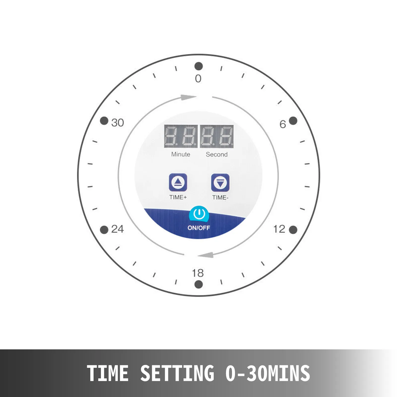 Se puede configurar el tiempo del ciclo de limpieza (0-30 minutos), simplemente seleccione el tiempo requerido y observe la pantalla digital hasta que se complete la limpieza y el limpiador ultrasónico de anillo de diamante se apagará automáticamente.