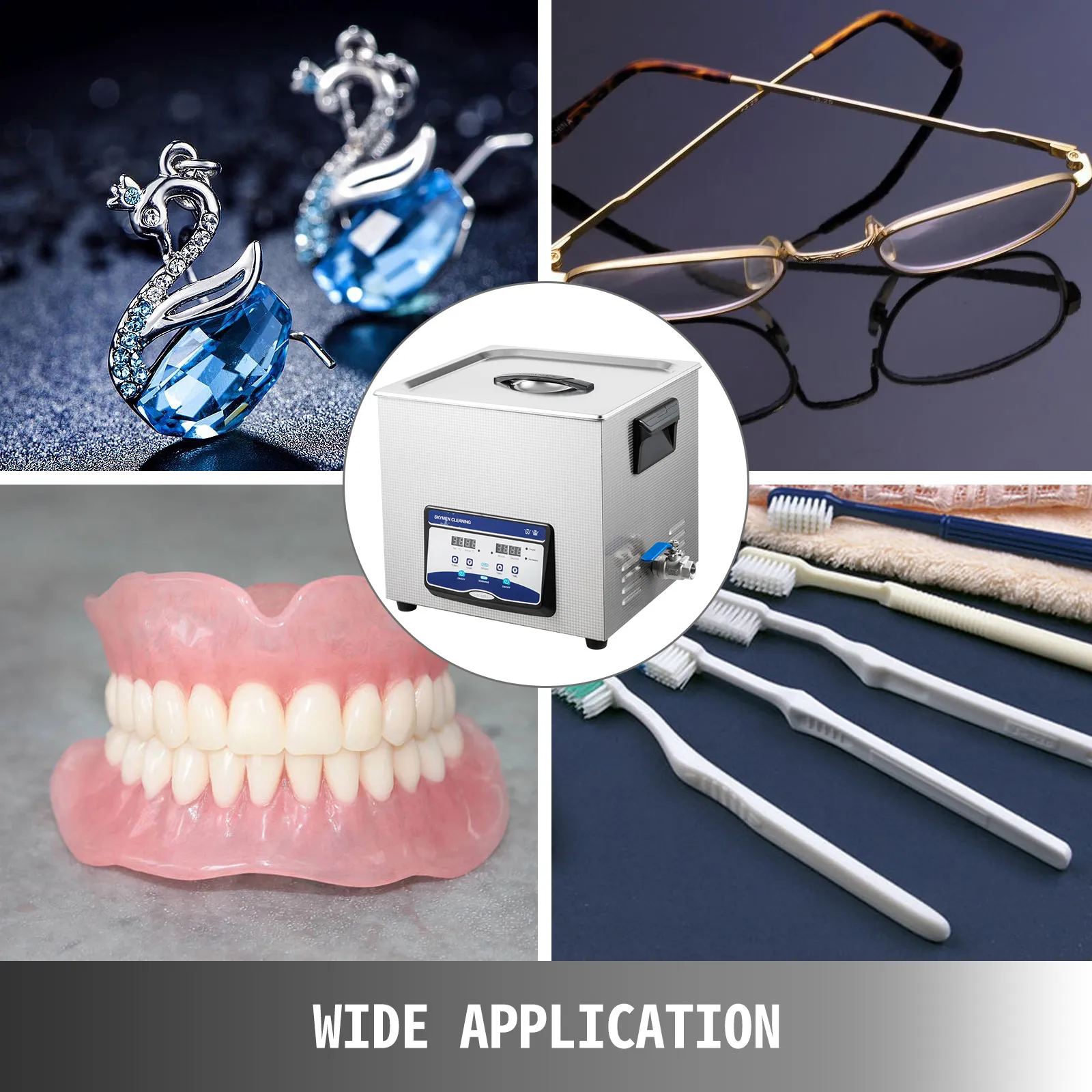 Este limpiador ultrasónico tiene funciones de desgasificación, calentamiento, semi-onda y sincronización para lograr un efecto de limpieza fuerte y suave sin dañar sus objetos de valor mientras los hace ver como nuevos. ¡Este limpiador ultrasónico es adecuado para limpiar joyas, anteojos, broches, dentaduras postizas, cepillos de dientes, y otros objetos de valor! Equipo ideal para la tienda de óptica, joyería, relojería, taller de reparación de teléfonos móviles, odontología, oficina, hogar y otros equipos.