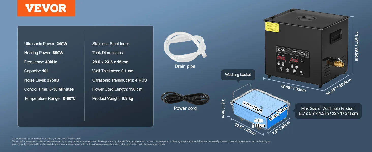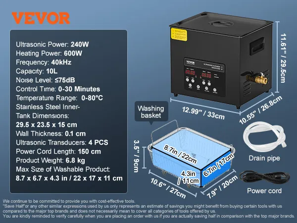 Uso versátil: Ideal para limpiar joyas, piezas de automóviles, gafas y más. Tanto si es profesional como si lo usa a diario, el limpiador ultrasónico VEVOR es una herramienta fiable para todas sus necesidades de limpieza