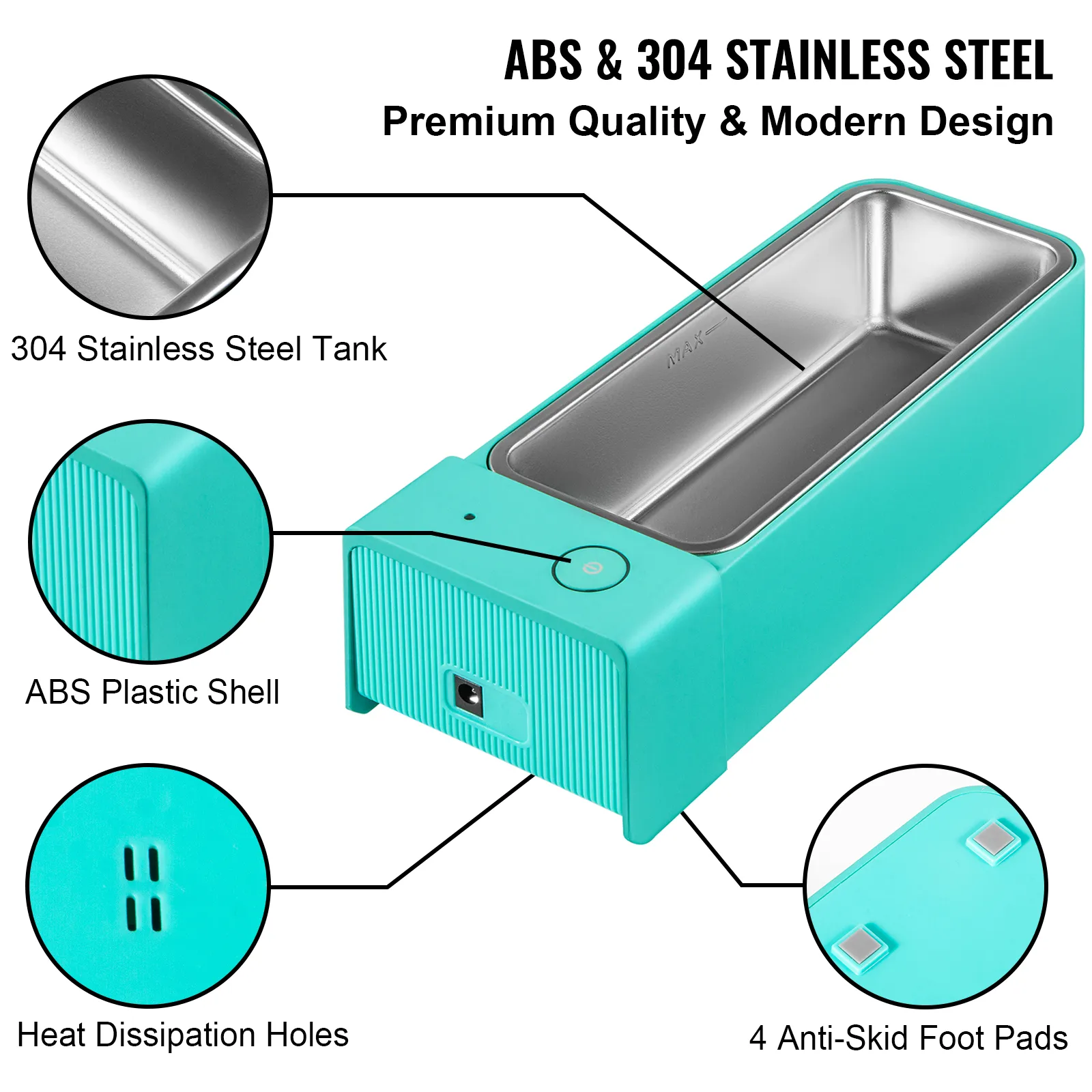 Esta máquina limpiadora de gafas está construida con acero inoxidable 304 resistente y plástico ABS, lo que la convierte en una máquina eficiente para trabajos de limpieza diarios o profesionales. Nuestro limpiador ultrasónico para dentaduras postizas emitirá ondas ultrasónicas de 50 kHz para lavar profundamente la suciedad de la superficie y las grietas de sus objetos de valor. Con un solo botón, el limpiador de joyas profesional es ideal para limpiar joyas, anteojos, relojes, dentaduras postizas, brochas de maquillaje, etc.