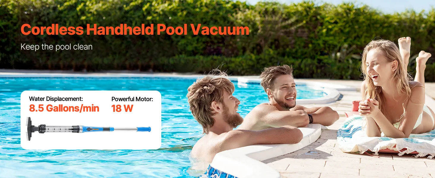 VEVOR Aspiradora de Piscina Recargable, Aspiradora de Mano Inalámbrica de 8,5 GPM para Jacuzzi con Poste de Extensión, para Limpieza Profunda y Succión Potente, para Piscinas Elevadas o Enterradas