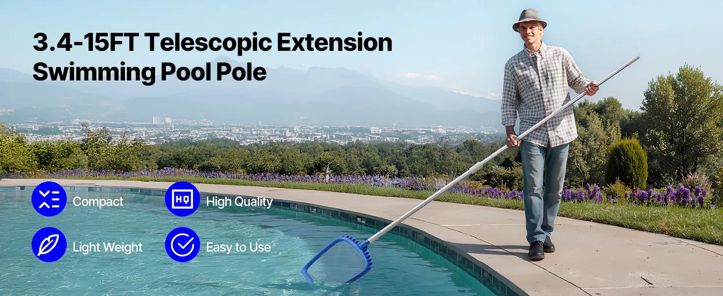Con nuestra pértiga de limpieza de piscinas, podrá gestionar fácilmente el mantenimiento diario de la piscina para que familiares y amigos puedan nadar y disfrutar del verano sin preocupaciones.