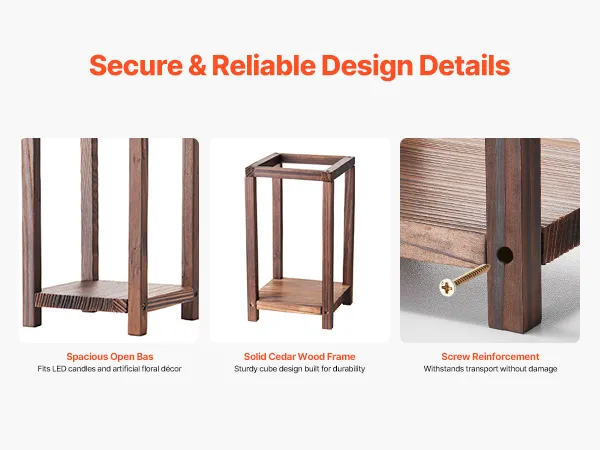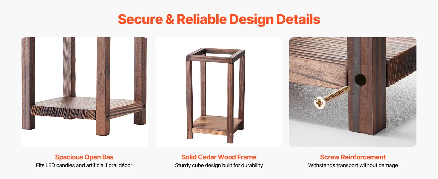 Materiales resistentes: A diferencia de las frágiles linternas de plástico, nuestros farolillos de madera cuentan con un marco de cedro carbonizado con veta natural y una estructura cúbica de forma estable. Soportan traslados, montajes y transportes repetidos para eventos frecuentes o uso comercial