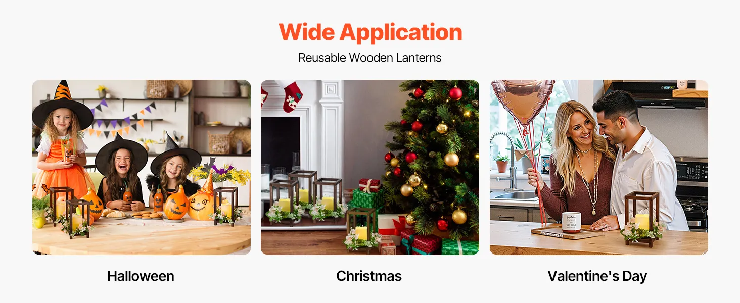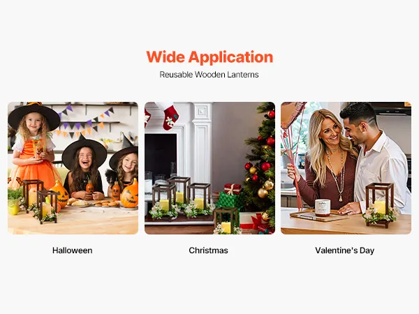 Juego completo de faroles: El farol de vela incluye 24 marcos de madera, cada uno de 140 x 140 x 254,8 mm. Un paquete a granel que cubre todas tus necesidades de decoración de una sola vez, permitiéndote instalarlo rápidamente y organizar diferentes eventos