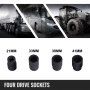 El accionamiento de la llave dinamométrica es ideal para rescatar tuercas de rueda atascadas y ofrece una salida de par máxima segura: 7.500 N / m. Viene con 3 tomas de 6 puntos (41 mm, 38 mm y 33 mm) y una sola toma de 4 puntos (21 mm).