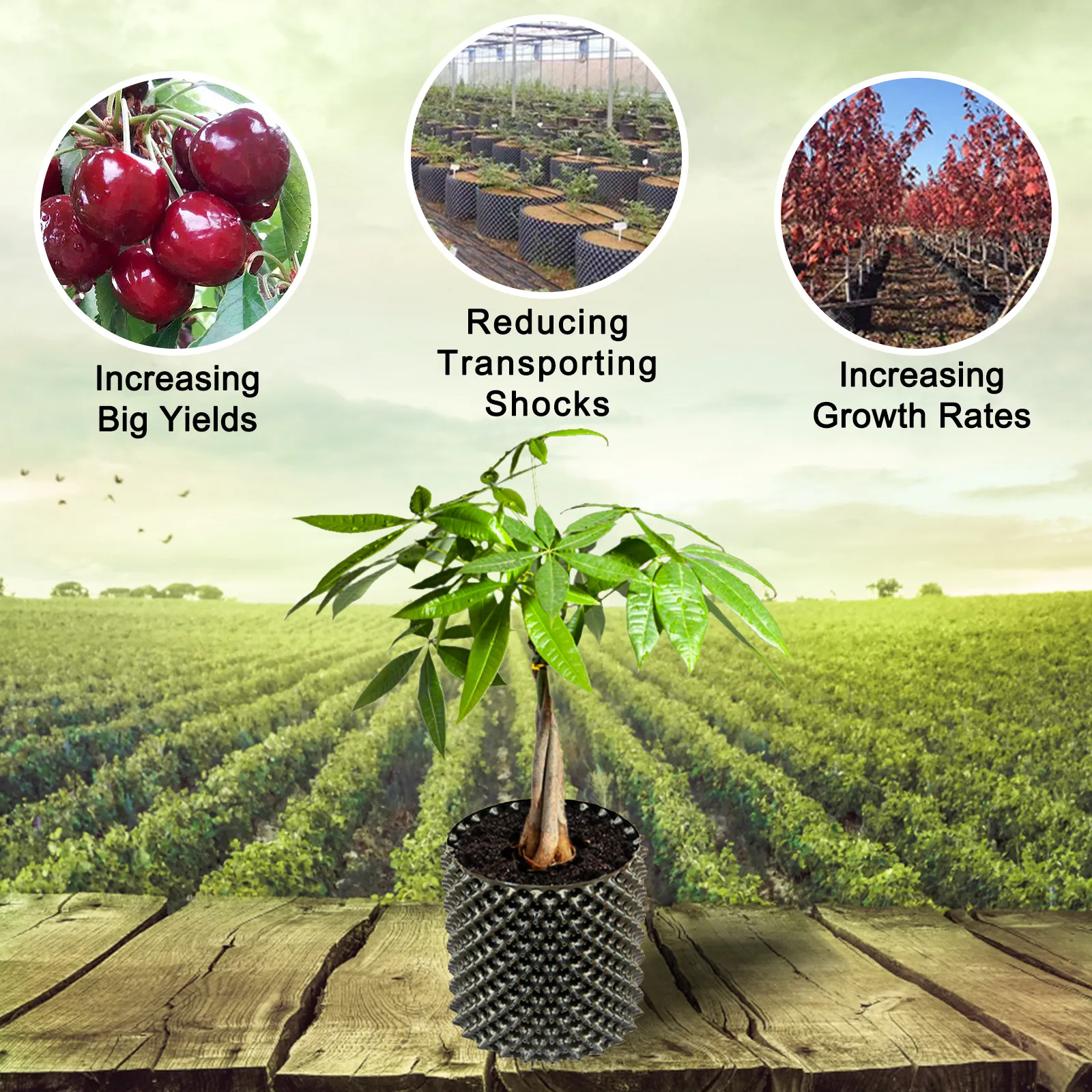 La maceta evita que las plantas desarrollen raíces en espiral. Permite que las plantas crezcan más rápido y con grandes rendimientos. Las plantas que crecen en 1 o 2 temporadas se pueden trasplantar fácilmente a jardines con menores riesgos de impacto de trasplante.