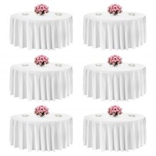 VEVOR White Round Tablecloths 6 Pack, 132 Inches in Diameter, Stain- & Wrinkle- Resistant, Machine Washable Table Clothes, Polyester Fabric Table Covers for Wedding, Party, Banquet, Formal Events