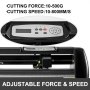 Este plóter de corte de vinilo profesional de 34 " con soporte viene con un diseño fácil de usar y el software SIGNMASTER, que le permite cortar diseños y letreros personalizados profesionales con sus máquinas de corte, dándole la posibilidad de usar sus fuentes, importar ilustraciones personalizadas y dibujar sus propias formas. Viene con pantalla LCD iluminada y botones grandes en el panel de control. La velocidad y la fuerza ajustables están disponibles con solo pulsar un botón. La lectura digital permite realizar ajustes exactos y precisos. Adecuado para el sector publicitario, señalización variada, dibujo de la estructura del edificio o dibujo de líneas, decoración de automóviles, sector del vidrio, artesanía, complementos para la transferencia de calor, decoración de interiores, rotulación, industria de la belleza del automóvil, diseño de moda, etc.